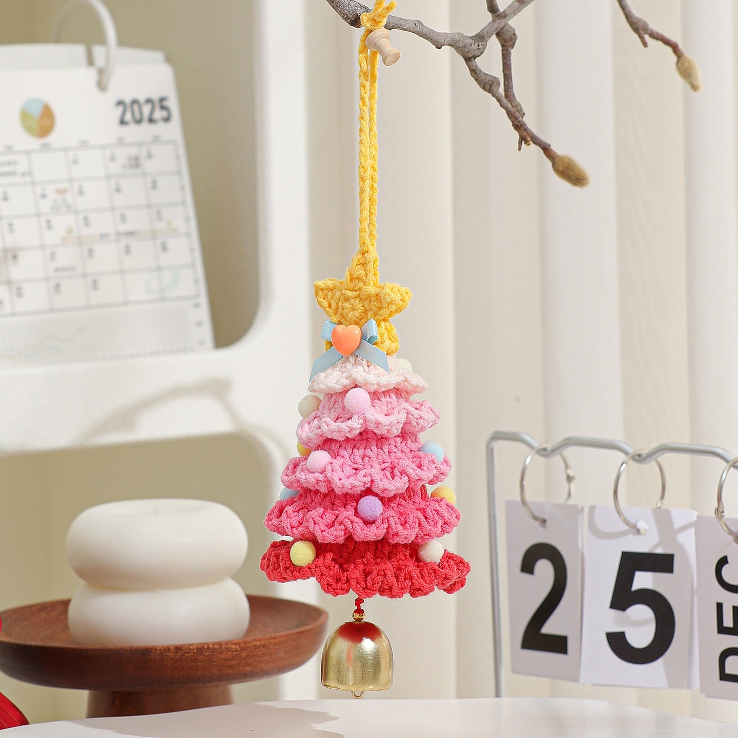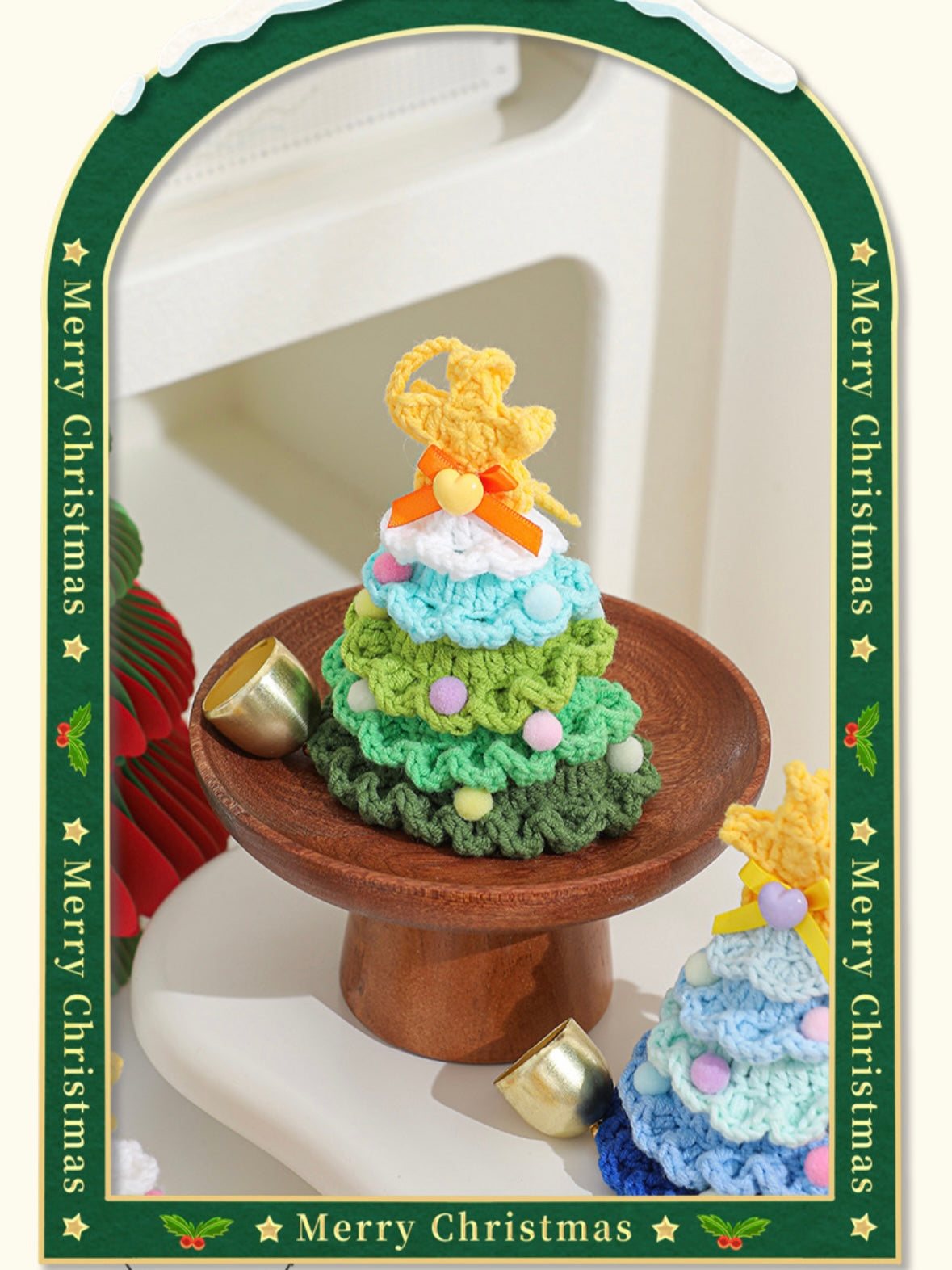 【完成品】クリスマスツリーベル・飾り|全12色・クリスマスギフト・編む手間なし|プレゼントやギフトに最適恋人・友達・誕生日・クリスマス