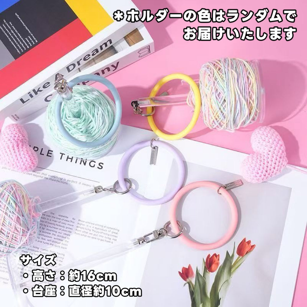*手に通して使えるコンパクトなホルダーで、毛糸が転がらずスムーズに編める便利アイテム。電車・カフェ・公園など、どこでも気軽に編み物が楽しめます。
