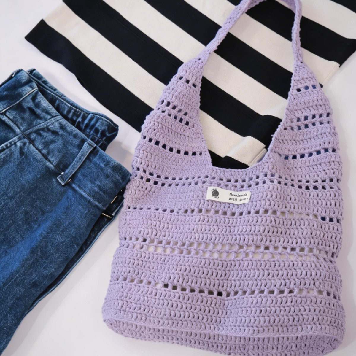 軽やかでしっかりとした編み地が特徴の韓国風コットンメッシュバッグ「ゆるバッグ」キット。リラックスした雰囲気を演出し、日常使いやお出かけに最適なアイテムです。どんなスタイルにも合わせやすく、実用性も兼ね備えています。