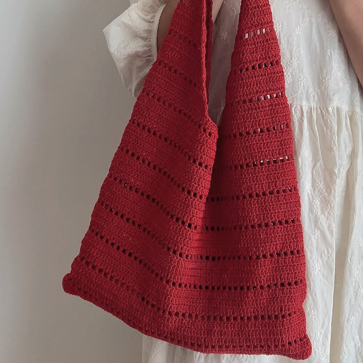 【手編みキット】ゆるバッグ|韓国風コットンメッシュバッグ |全23色|ワンハンドルバッグ|初心者向け|編み方動画付き