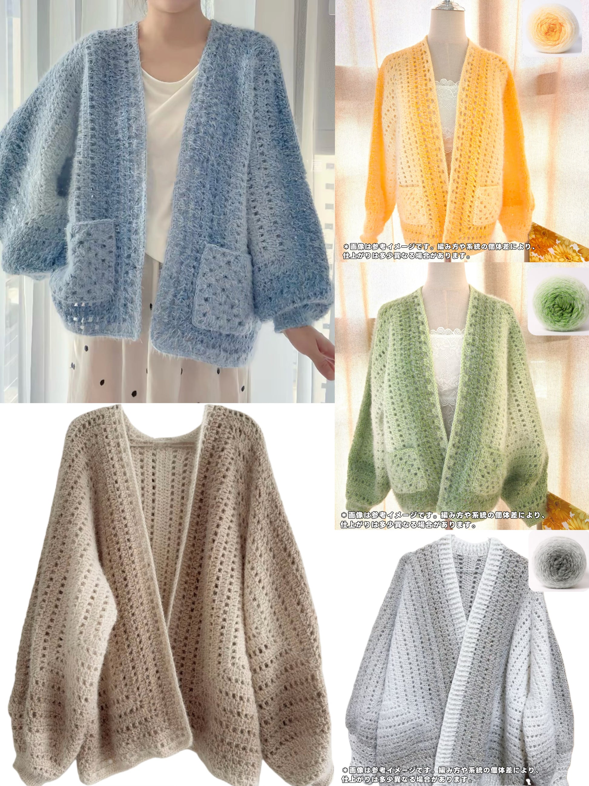 【毛糸キット】ヘキサゴンカーディガン / 六角形カーディガン\SNSで話題/ 初心者でも簡単!全9色展開 かぎ針7/0〜8/0号(編み方動画プレゼント)