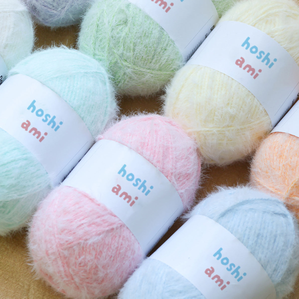 🌼 まるで本物の綿毛!ふわふわな毛足の「たんぽぽ」 「たんぽぽ」は、その名の通り本物のタンポポの綿毛を思わせる、長く柔らかな毛足が特徴のファンシーヤーン(ファーヤーン)です。 ナイロンとコットンを絶妙なバランスで混紡することで、空気をたっぷり含んだ驚くほど軽やかな質感を実現しました。