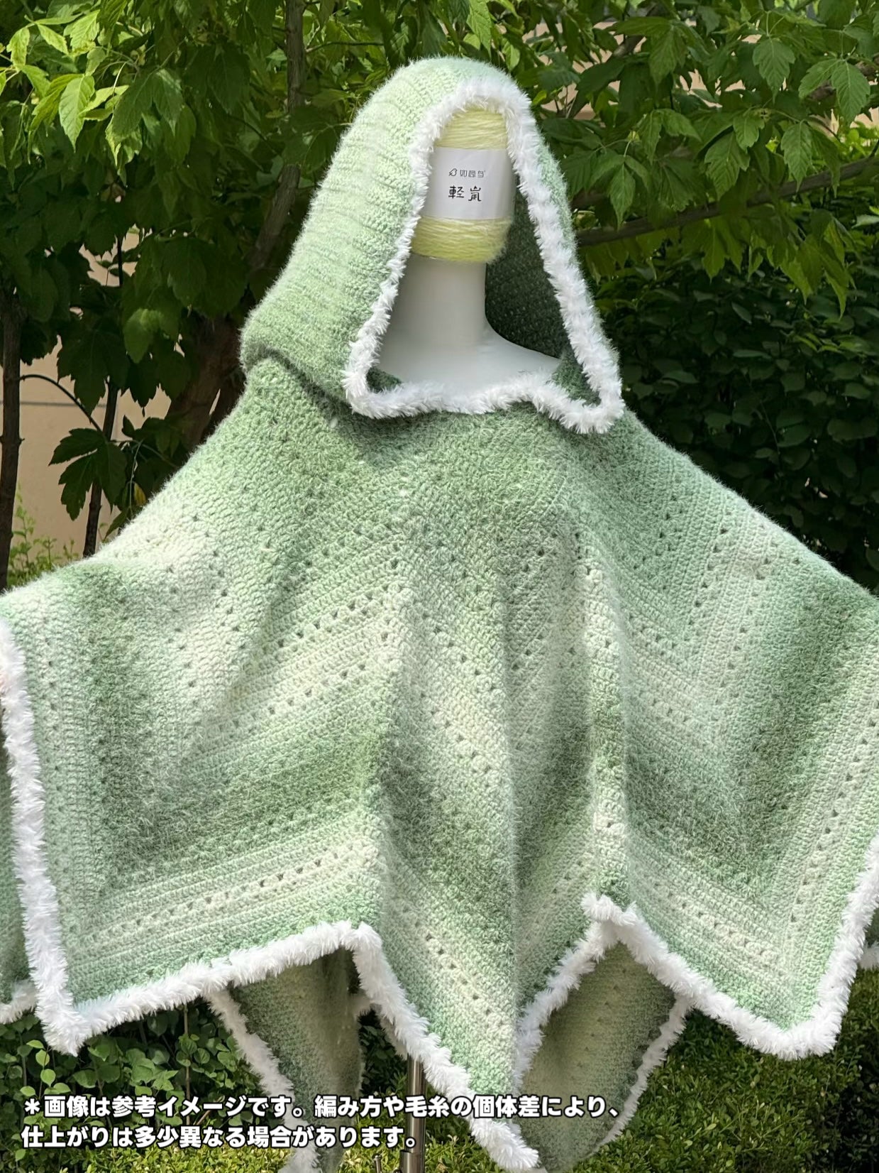 ・フード付きタイプ:ポンチョ用 3玉 + フード用 1玉 + ファーヤーン 2玉
