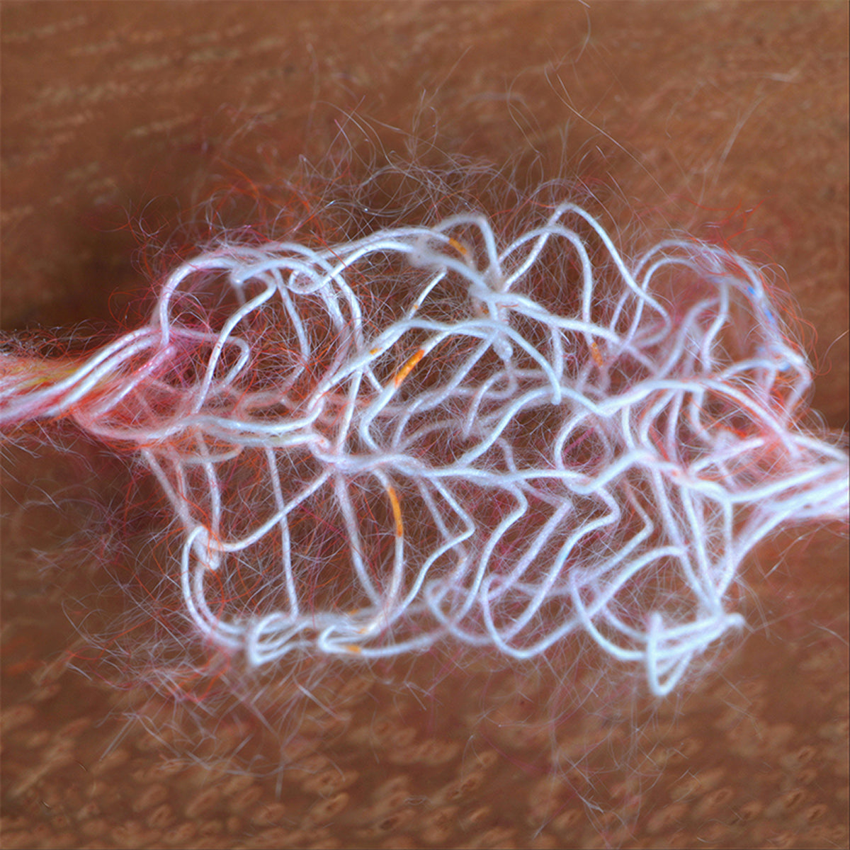 一般的な毛糸とは違い、繊維の中に空気をたっぷりと含ませる特殊なスプレー加工を採用しています。