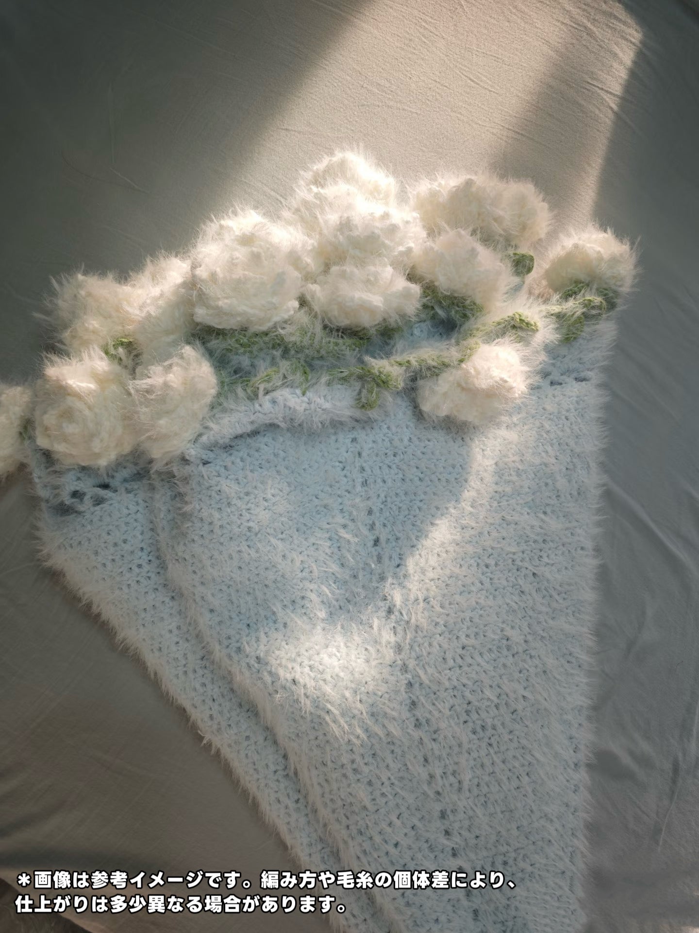 初心者でも簡単に編めるお花束ブランケットの毛糸キットです。