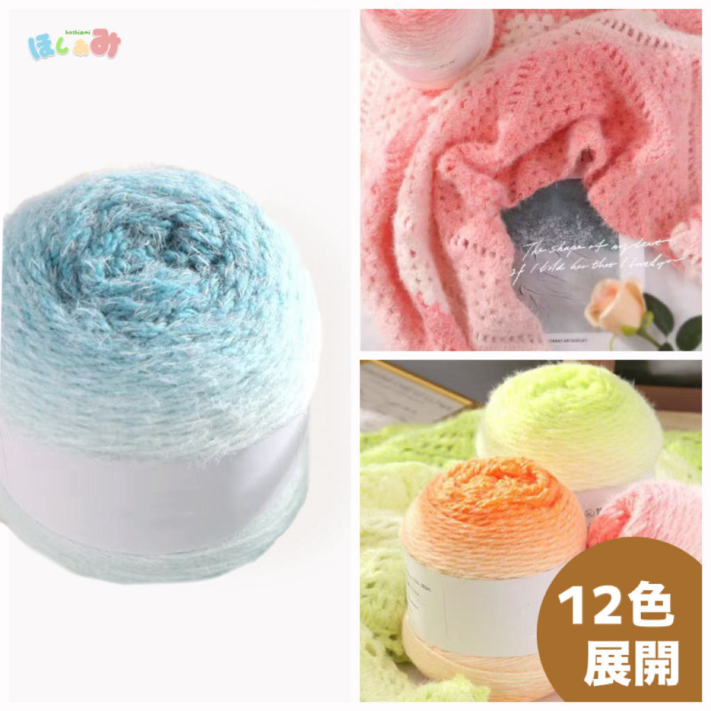 ロングファーヤーン 段染め極太 初心者向け 大容量ショール・花束ブランケット用 190g かぎ針7/0号〜8/0号